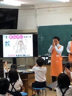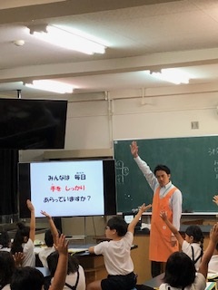 今日は、理科室で2年生の「手洗い授業」がありました。