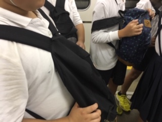 電車内ではリュックを前にして、他の乗客に迷惑をかけないようにしています。