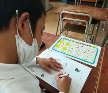 五十音図はリズムをつけて歌ったりするなど、日本語に関心を持ってもらえるよう学習が進められています。