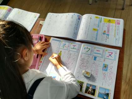 カタカナの学習です。一文字ずつ空書きをして、運筆を確認してから書くようにしています。