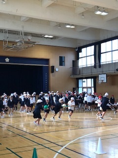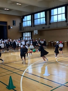 子ども達は、ボールが落ちないように息を合わせて運んでいました。