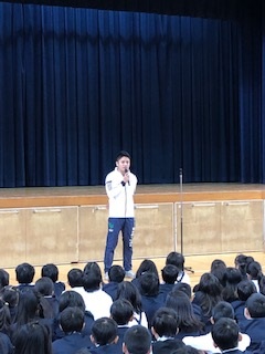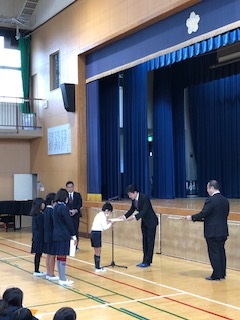 今日は、講堂で全校朝会がありました。