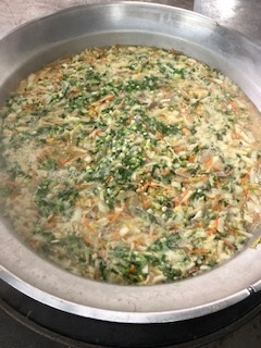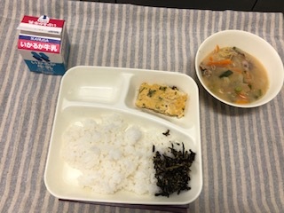 今日の給食には、ささみ、とうふ、コーン、みつばなどが入っています。