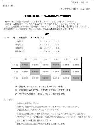 明日11月16日(土)に「土曜授業(作品展)」があります。