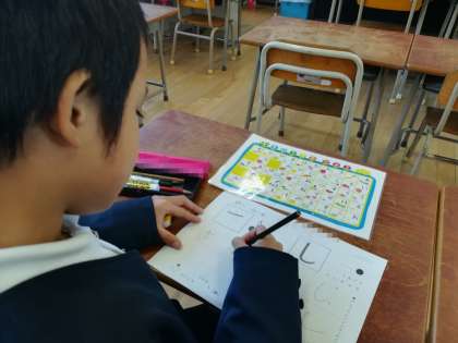 上から下へ、左から右へ、といった自然に身についている書き順の決まり事も外国籍の児童にとっては、初めてのことばかり。ひとつひとつ丁寧に指導してもらっています。