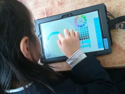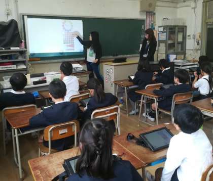 Webプログラミングサイト「ビスケット」を使って、プログラミングを体験しました。子ども達の描いた、色とりどりの魚がプログラミングを施すことにより、口をパクパクさせながら泳ぐようになりました。