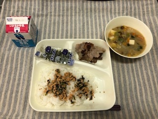 ◇学校給食献立コンクール優秀賞作品です。福島区野田小学校の昨年の6年生の作品です。献立のねらいは、【野菜をいっぱい使って5・6時間目も勉強が、がんばれるような給食】です。