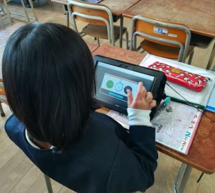 11月18日(月)の様子です。タブレット学習は、ひとつの単元ごとに10分という制限時間が設けられており、短時間、集中して机に向かう練習にもなっています。