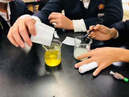 お薬の種類や使用方法、また内服するときに「なぜ水が良いのか」の実験も行い、学びを深めました。