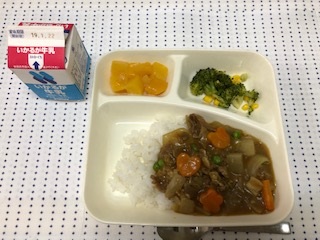 今日のカレーライスには、だいこん、れんこん、ブロッコリーが使われています。