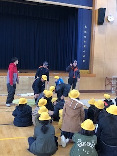 4年生 「水消火器体験」「簡易スリッパ作り」