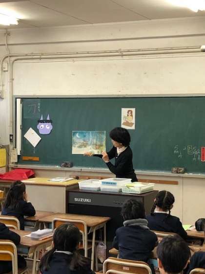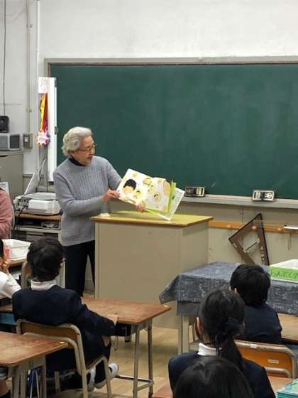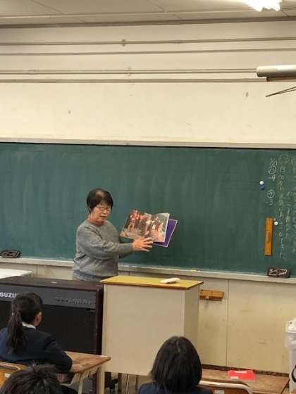 今日は、低学年の教室で「読み聞かせ」がありました。