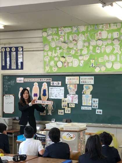 今日は、4年生の教室で「保健指導」がありました。