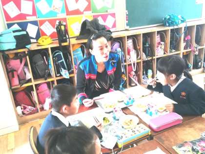 1月29日(水)の様子です。給食を一緒に食べながら「これは英語では何て言うの?」とC-NETのニルファ先生にさかんに質問する様子が見受けられました。