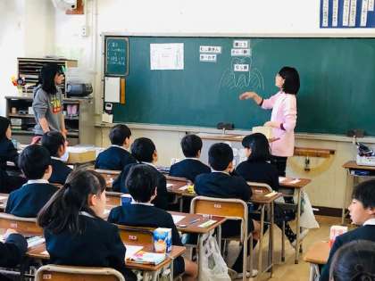 歯科衛生士さんから歯についてお話があり、その後保健室でフッ化物塗布を行いました。