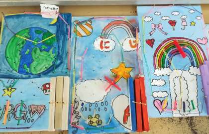 「くぎうちトントン」という単元を学習しています。ビー玉がどのように動くか想像しながら、くぎを打つ場所を工夫して、それぞれに個性的で素敵な作品に仕上がりました。