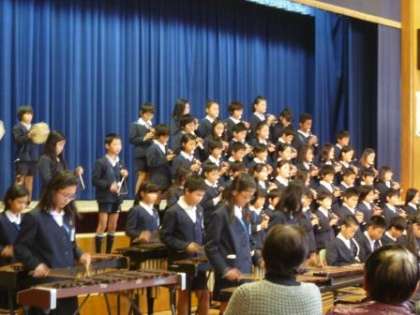 5年生は、なつかしい「上を向いて歩こう」をリコーダーで演奏しました。詩の群読やクラッピング、子ども達が大好きな「妖怪ウォッチ」の合奏もしました。
