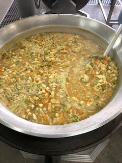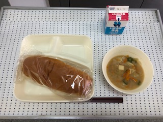 みそ汁は、とうふ、キャベツ、たまねぎ、にんじん、青みにオクラを使用しています。