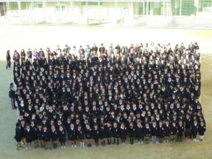 創立140年を記念して、全員集合で写真を撮りました。9日には、人文字で航空写真を撮る予定です。