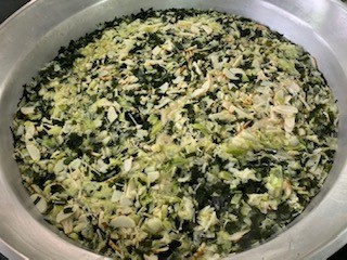 ●「豚丼」は、豚肉、糸こんにゃく、たまねぎ、にんじんをいためて煮、ごはんに合う味付けに仕上げてます。