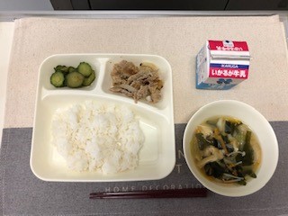 今日は、かつおぶしを粉にしたものを使い、調味料と合わせて、ゆでたきゅうりとあえています。