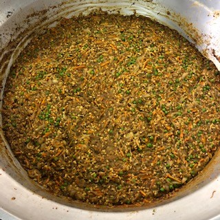 ●キーマカレーとは、ひき肉を使ったカレーのことです。今日は、ひき肉のほかに、ひきわり大豆も使っています。