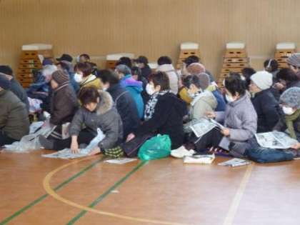 3時間目は、保護者の皆様、地域の方々は講堂で阪神淡路大震災のビデオを見て、防災についての話を区役所の方に教えていただきました。そのあと、新聞紙でできるスリッパの作り方を教えていただきました。