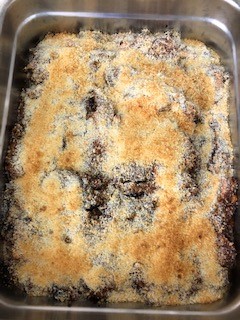 4.容器に入れ、パン粉をふり、焼き物機で焼く。