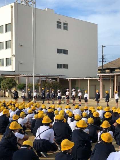「後期児童会」の紹介です。代表委員会の子どもたちが、一人一人元気な声で決意表明をしていました。全校児童から温かい大きな拍手がありました。