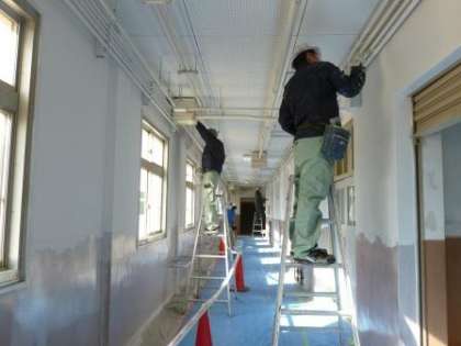北校舎2階の廊下を管理作業員さんたちがきれいにペンキの塗り替えをしてくださいました。今週の月曜日から今日までの1週間、子ども達の邪魔にならないように、授業中や特別教室で学習しているときにしてくださいました。