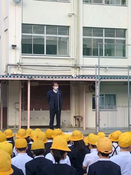 子どもたちは、きちんと整列し、良い姿勢でお話を聞いていました。