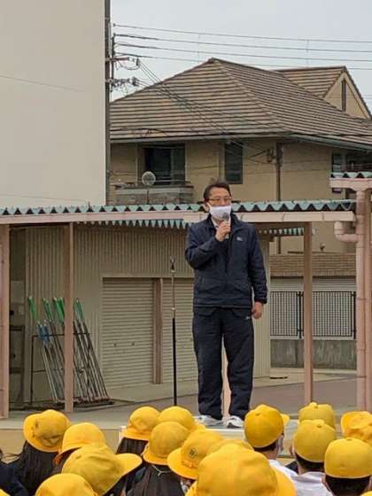 校長先生からは、『学校から帰った後の遊び方』についてお話がありました。「公園は、小さな子どもからお年寄りの方までたくさんの人が利用しています。まわりの人たちの迷惑にならないように、楽しく仲良く遊んでください。」と話されていました。