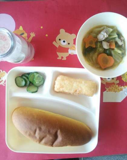 今日は、スープ煮にラッキーにんじんがはいっていました。