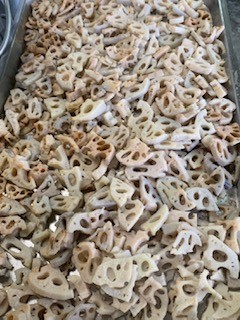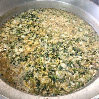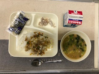 ●大阪市の学校給食で使っているこんにゃくには、四角いこんにゃくのほかに、ところてんのように押し出した「つきこんにゃく」、糸のように細い「糸こんにゃく」、糸こんにゃくをたばねた「つなこんにゃく」があります。