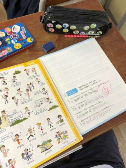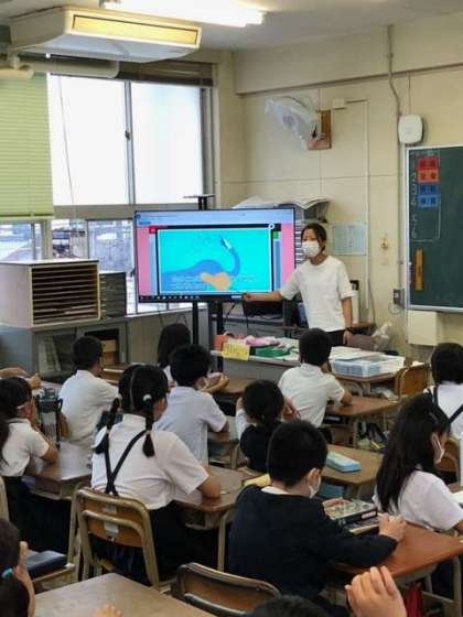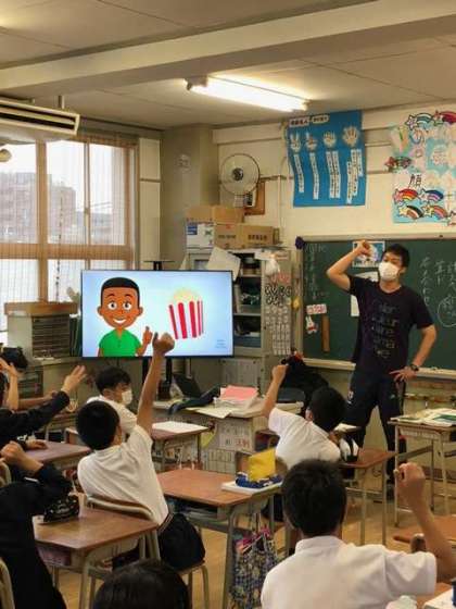 金曜日の朝の会は、『イングリッシュタイム』です。子どもたちは、楽しそうに活動していました。