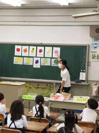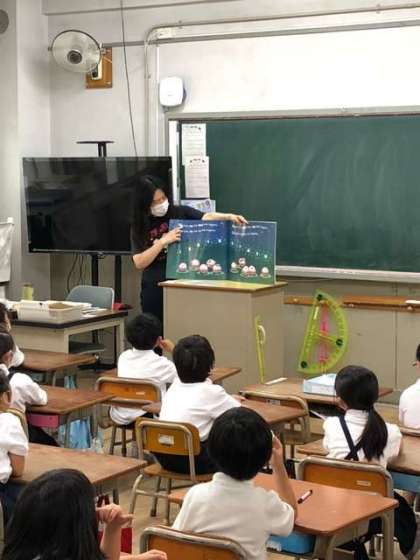 今日の朝学習は、『イングリッシュタイム』でした。低学年の子どもたちは、英語の絵本の読み聞かせを聞いたり、担任の先生に合わせて果物の名前を英語で発音したりして、楽しんでいました。