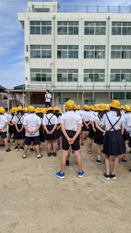 次は今週から始まる国際クラブのお話、最後は今月の生活目標「安全に気をつけよう」についてお話がありました。