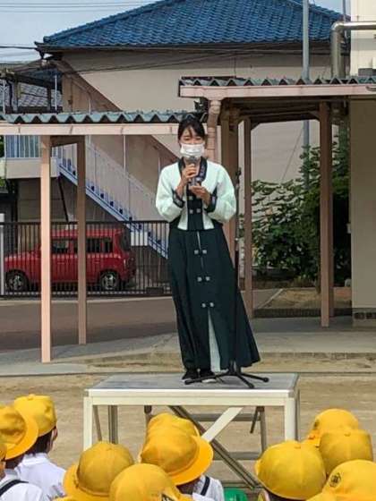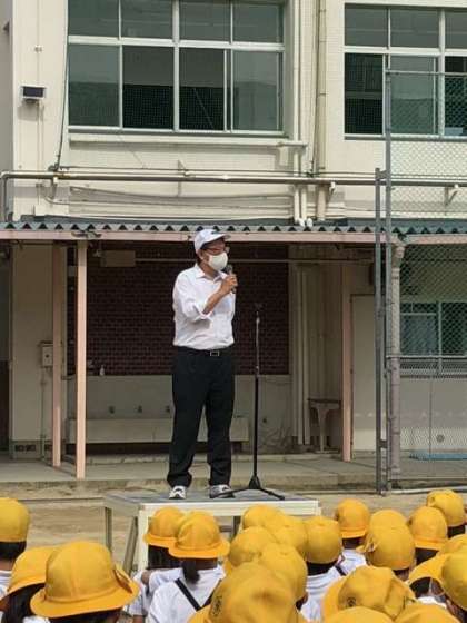 校長先生からは、プール水泳についてお話がありました。「体調管理に十分気をつけて、無理をしないように楽しく泳いでください。」とおっしゃっていました。