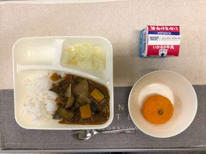 ●「夏野菜のカレーライス」には、牛肉、かぼちゃ、たまねぎ、なす、トマト、ピーマン、セロリ、にんにくが入っています。