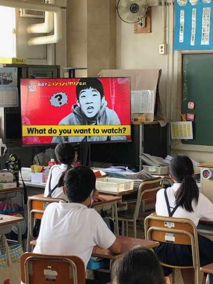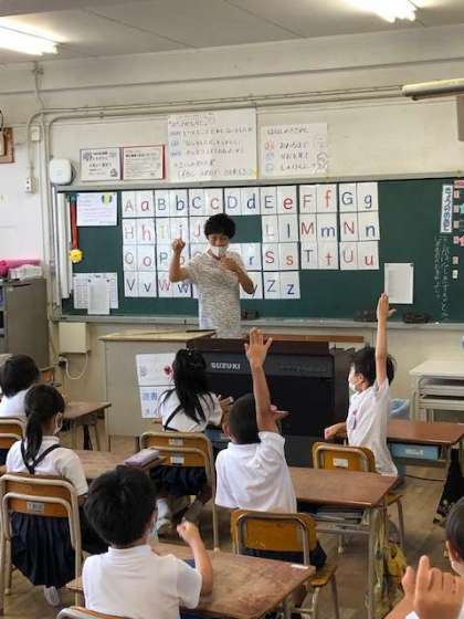 今日の朝学習は、『イングリッシュタイム』でした。どの学年の子どもたちも、レベルアップしているようで、すらすら英語で単語を発音したり、簡単な文を話したりできています。