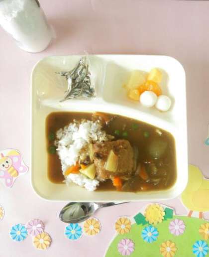 今日は、特別献立で入学祝い献立でした。星やハートのラッキー人参がたくさん入っていました。もちろん今日も完食です。