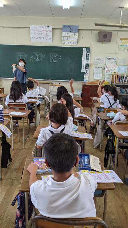 新出漢字の練習をしています。書き順、形を覚える空書き、しっかりできていました。