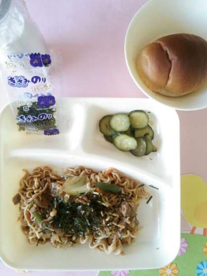 今日のメニューはみんなに大好評の焼きそばでした。ほとんどのクラスがパンや牛乳まで完食でした。