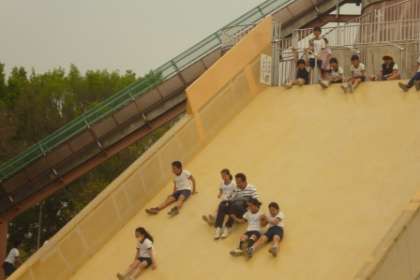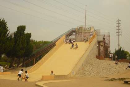その後、遊具のある場所へ移動して、大きいすべり台で遊びました。