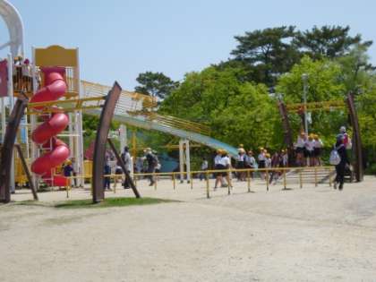午前中は、子どもの楽園の遊具で遊びました。午後からは、谷合の原っぱで、新緑を味わうことができました。
