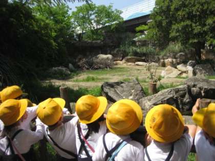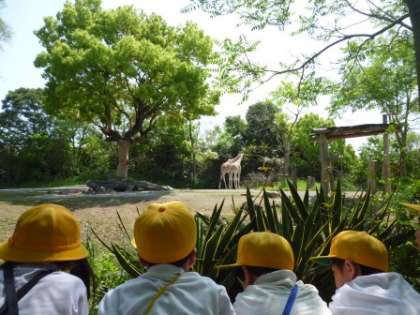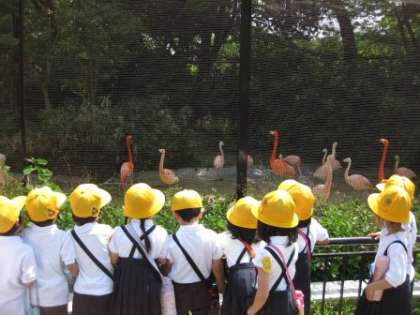 1年生は動物園に行きました。フラミンゴやぞう、キリンなどの動物を見ました。