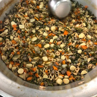 今日の給食には、食べやすくくだいたひきわり大豆を使っています。