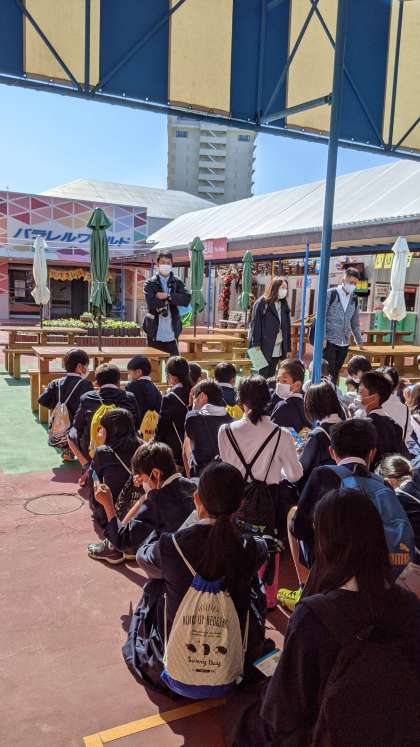 集合場所です。今からクラスごと、それから班活動になります。