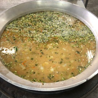 今日の千草焼きには、鶏肉、とうふ、コーン、みつばが入っています。