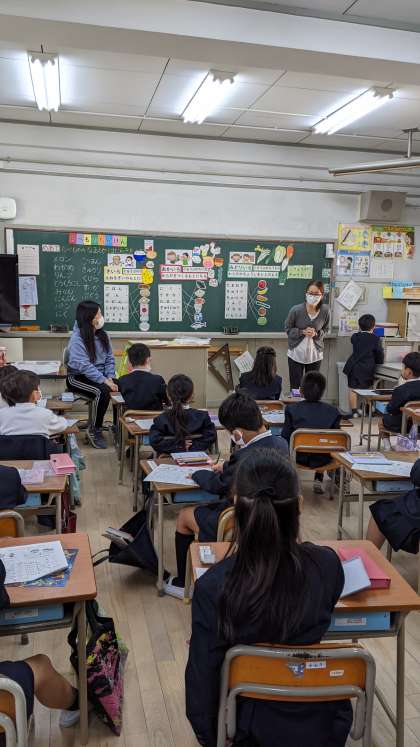 食べ物のはたらきごとに、赤、黄、緑に色分けしました。それぞれどんな栄養があるかも教えてもらいました。線で結んだり、色をぬったりして覚えました。